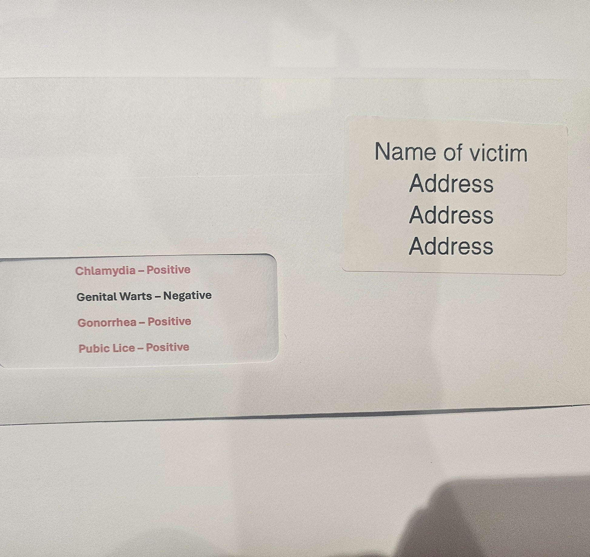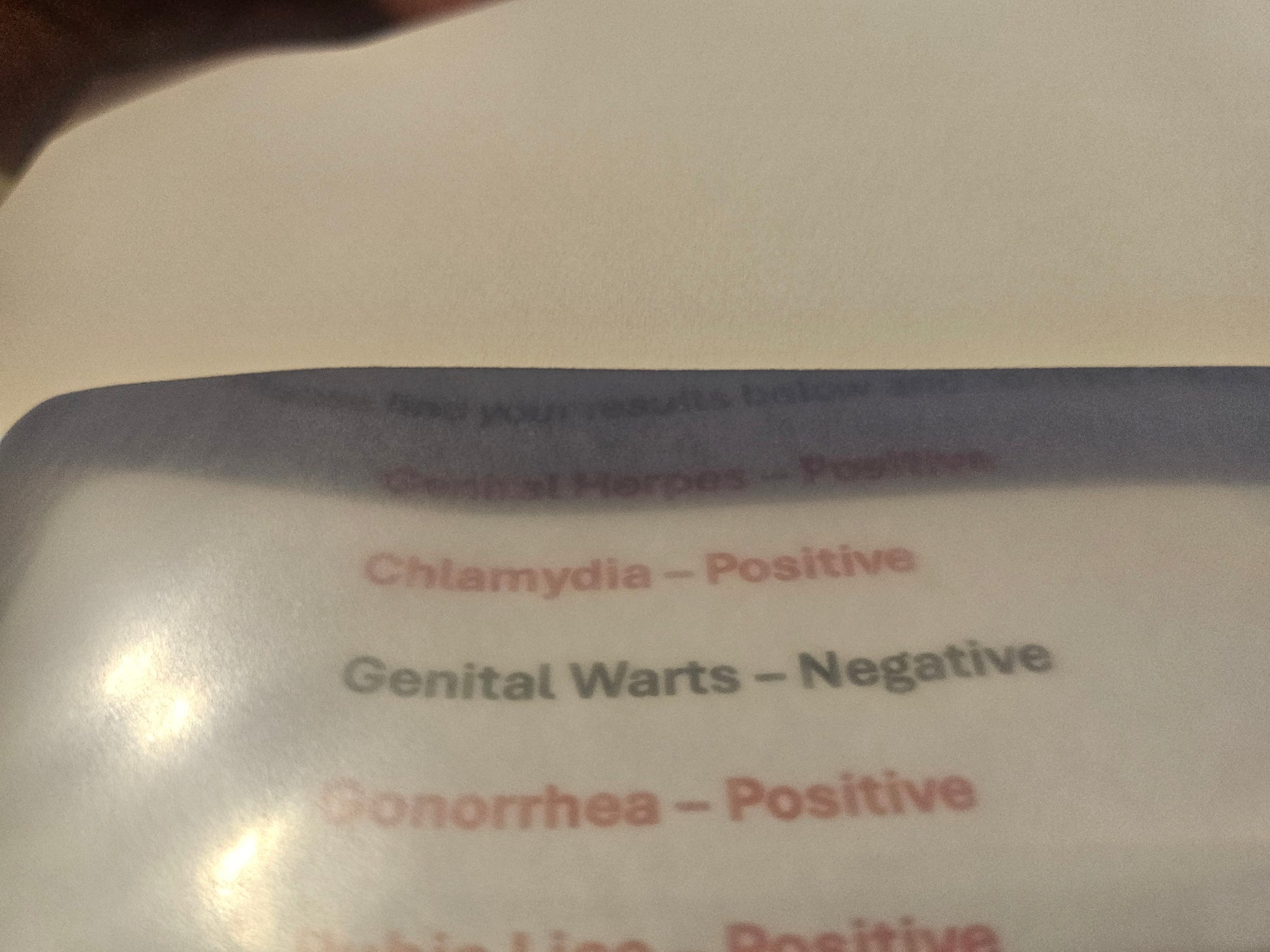 Embarrassment at the highest when your facing the post man or woman who's handing over an important envelope that just so happens to have been put in the wrong envelope and the sti result are at the window opening.....showing positive results! (And a token Negative to help keep it real!) If the nosy postman or others in the house try to peek through the window further they will only see more embarrassing results......until your victim has the courage to open it and they will see they have been pranked.